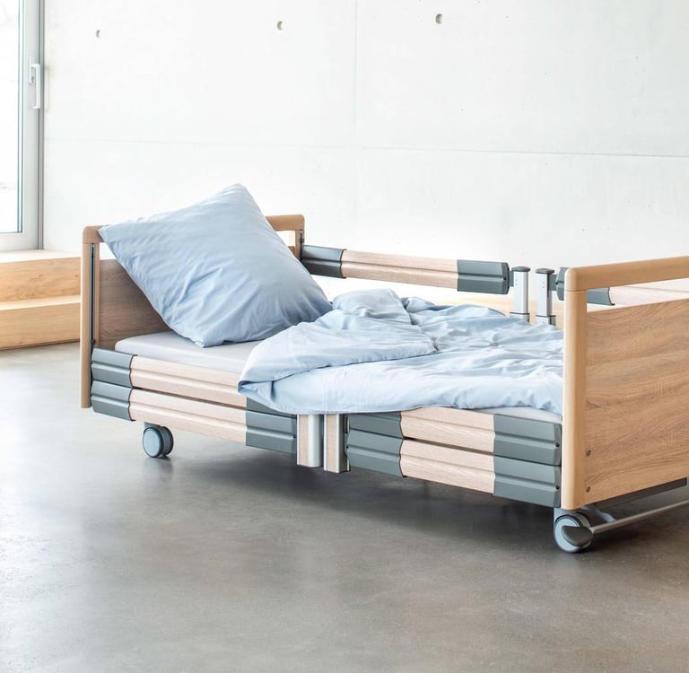 Für das Schlafzimmer bieten wir Ihnen eine Vielzahl Hilfsmittel, die Ihren Komfort und Ihrer Sicherheit beitragen. In unseren Sortiment finden Sie Pflegebetten und Einlegerahmen, Antidekubitusmatratzen und Lagerungshilfen, Patientenlifter, Aufrichter, Beistelltische und vieles mehr!